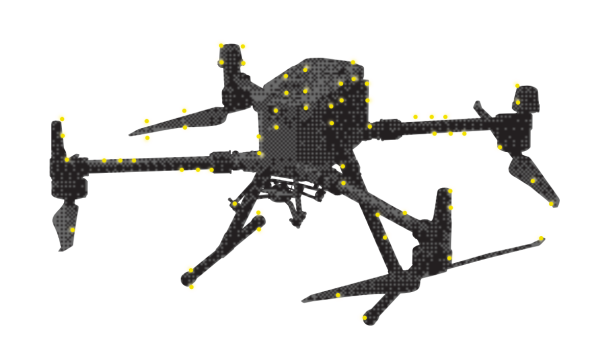 Drone type, payload estimation, threat scoring, swarm analysis including collective behavior modeling, leader identification.